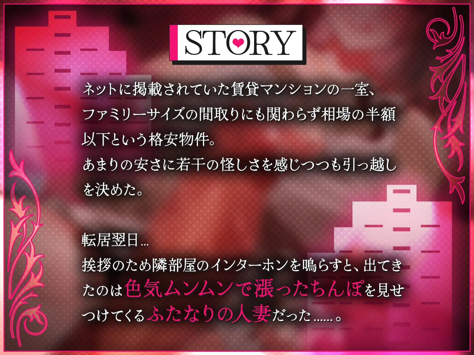 転居翌日…挨拶のため隣部屋のインターホンを鳴らすと、出てきたのは色気ムンムンで漲ったちんぽを見せつけてくるふたなりの人妻だった……。
