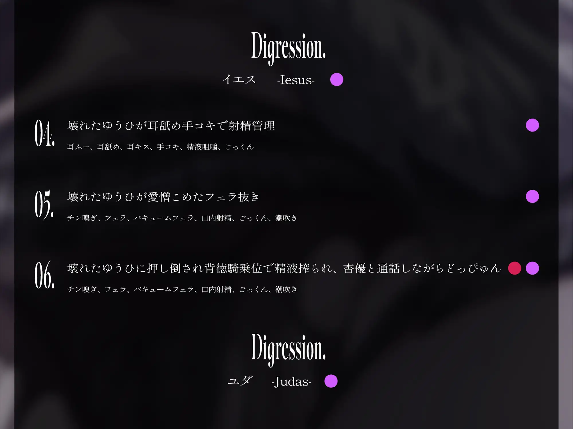 【べろちゅー/すまた/バックでゴム有セックス/オホ声/連続絶頂/潮吹き/囁き/手コキ/耳ふー/耳キス/耳舐め/精液咀嚼/ごっくん/チン嗅ぎ/フェラ/バキュームフェラ/口内射精/ごっくん/乳首舐め/騎乗位/中出し/通話しながらセックス/放尿/淫語煽り/パイズリ/チンカス掃除/チンカスごっくん/顔射】